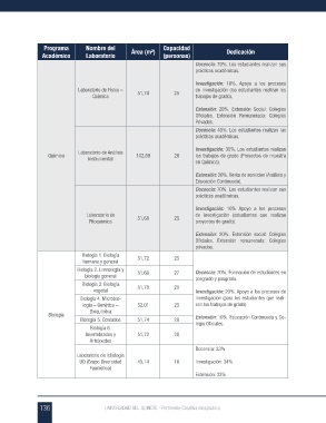 Académico Laboratorio Área (m²) (personas) Dedicación Académico Laboratorio Área (m²) (personas) Dedicación